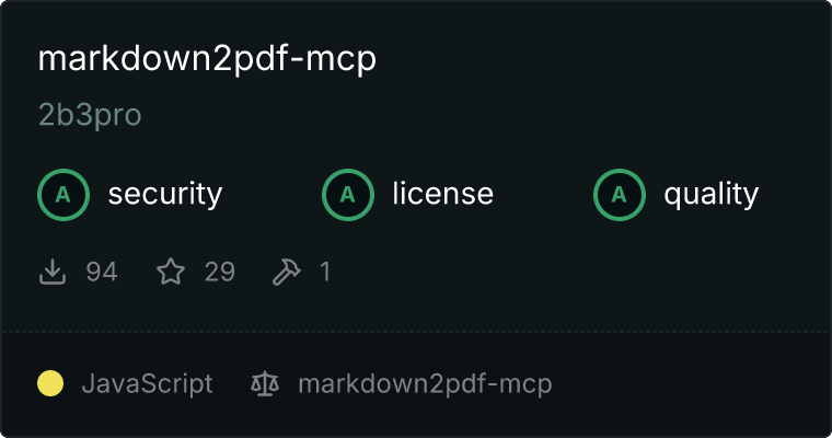 Our directory badge helps users to quickly assess server capabilities, safety, and instructions for installing the server.