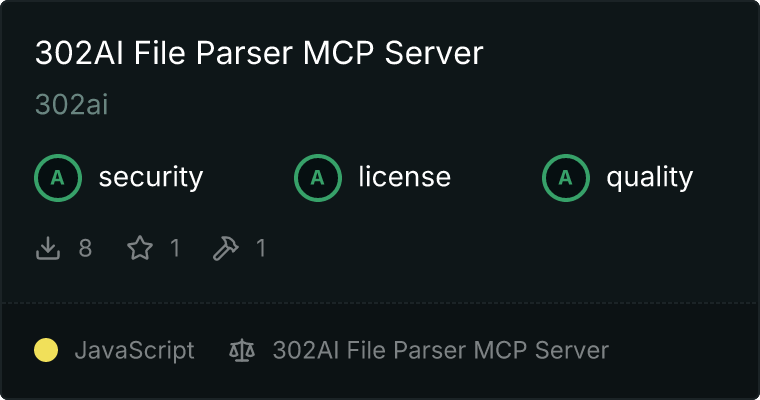 curl -X GET 'https://glama.ai/api/mcp/v1/servers/302ai/302_file_parser_mcp'