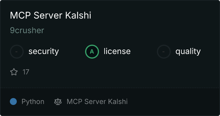 curl -X GET 'https://glama.ai/api/mcp/v1/servers/9crusher/mcp-server-kalshi'