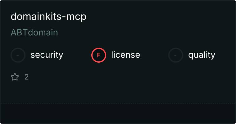 curl -X GET 'https://glama.ai/api/mcp/v1/servers/ABTdomain/domainkits-mcp'