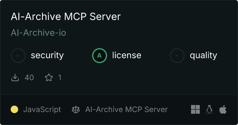 curl -X GET 'https://glama.ai/api/mcp/v1/servers/AI-Archive-io/MCP-server'