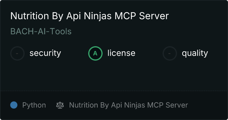 curl -X GET 'https://glama.ai/api/mcp/v1/servers/BACH-AI-Tools/bachai-nutrition-by-api-ninjas'