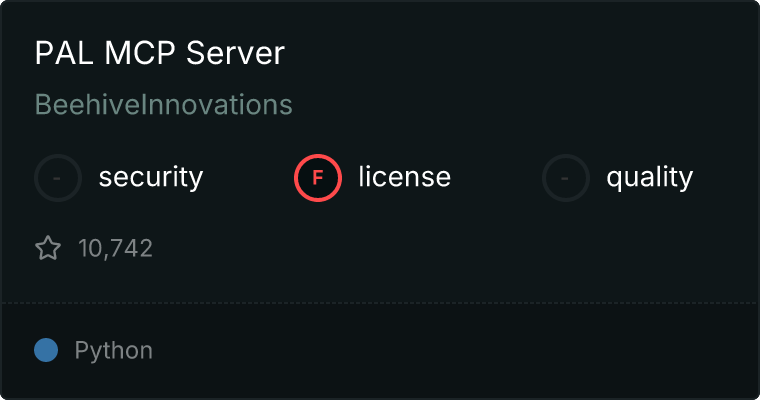 curl -X GET 'https://glama.ai/api/mcp/v1/servers/BeehiveInnovations/pal-mcp-server'
