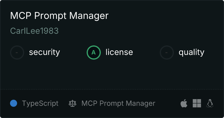 curl -X GET 'https://glama.ai/api/mcp/v1/servers/CarlLee1983/mcp-prompt-manager'