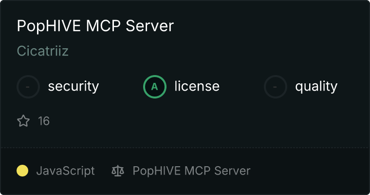 curl -X GET 'https://glama.ai/api/mcp/v1/servers/Cicatriiz/pophive-mcp-server'