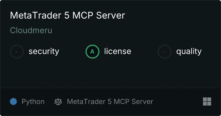 curl -X GET 'https://glama.ai/api/mcp/v1/servers/Cloudmeru/MetaTrader-5-MCP-Server'