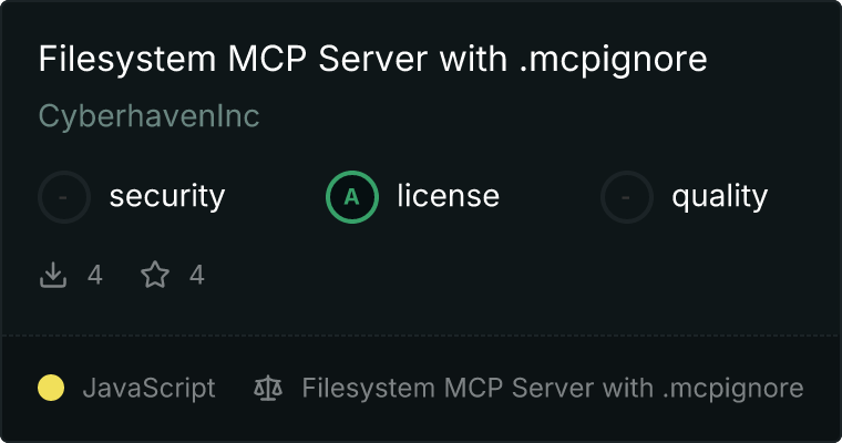curl -X GET 'https://glama.ai/api/mcp/v1/servers/CyberhavenInc/filesystem-mcpignore'