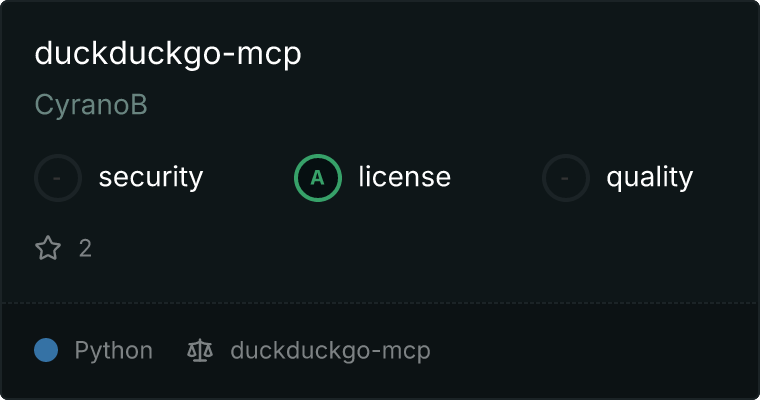 curl -X GET 'https://glama.ai/api/mcp/v1/servers/CyranoB/duckduckgo-mcp'