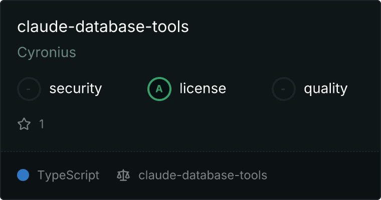 curl -X GET 'https://glama.ai/api/mcp/v1/servers/Cyronius/claude-database-tools'