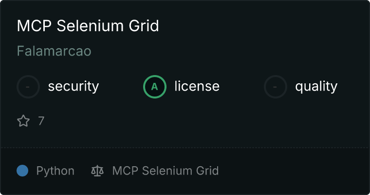 curl -X GET 'https://glama.ai/api/mcp/v1/servers/Falamarcao/mcp-selenium-grid'