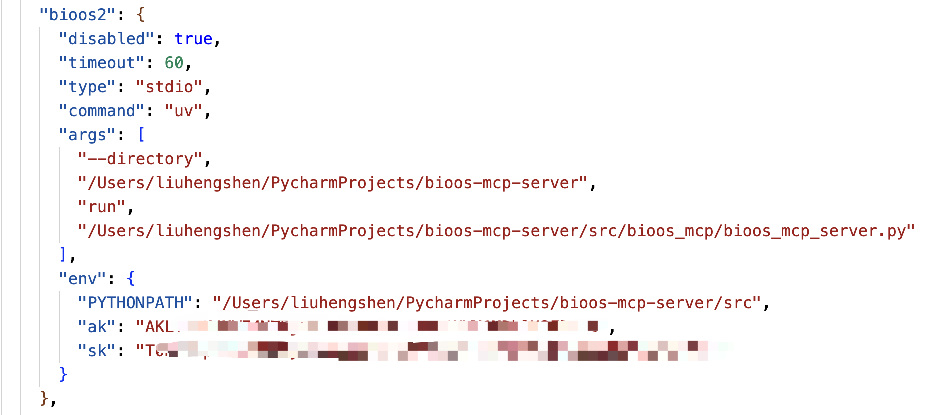 Configure the Bio-OS MCP Server script path in CLINE's MCP settings. Replace the placeholders with absolute paths to your installation: