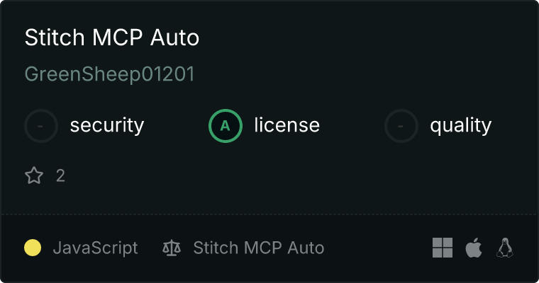 curl -X GET 'https://glama.ai/api/mcp/v1/servers/GreenSheep01201/stitch-mcp-auto'
