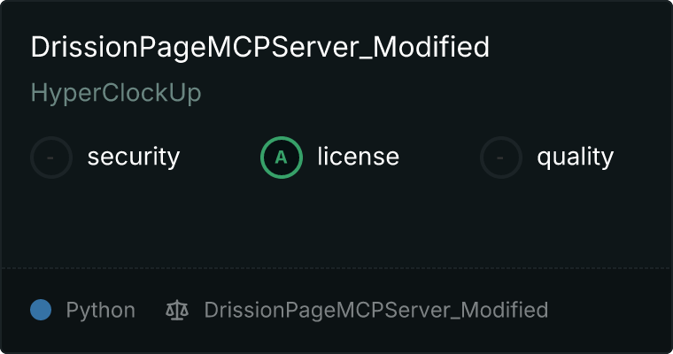 curl -X GET 'https://glama.ai/api/mcp/v1/servers/HyperClockUp/DrissionPageMCPServer_Modified'