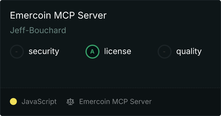 curl -X GET 'https://glama.ai/api/mcp/v1/servers/Jeff-Bouchard/emercoin-mcp-server'