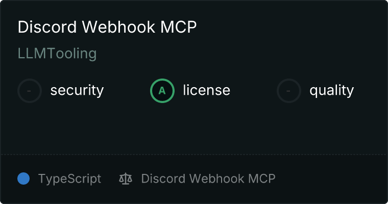 curl -X GET 'https://glama.ai/api/mcp/v1/servers/LLMTooling/discord-webhook-mcp-server'