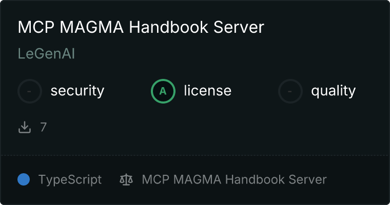 curl -X GET 'https://glama.ai/api/mcp/v1/servers/LeGenAI/mcp-magma-handbook'