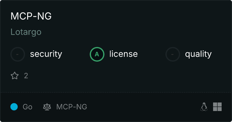 curl -X GET 'https://glama.ai/api/mcp/v1/servers/Lotargo/MCP-NG'