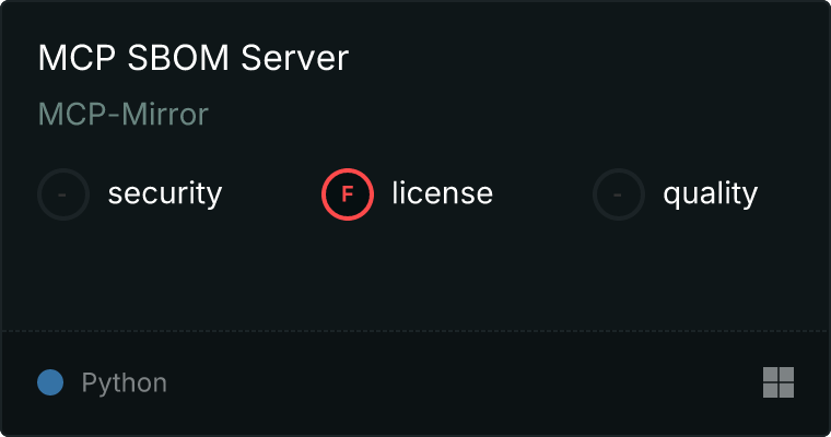 curl -X GET 'https://glama.ai/api/mcp/v1/servers/MCP-Mirror/gkhays_mcp-sbom-server'