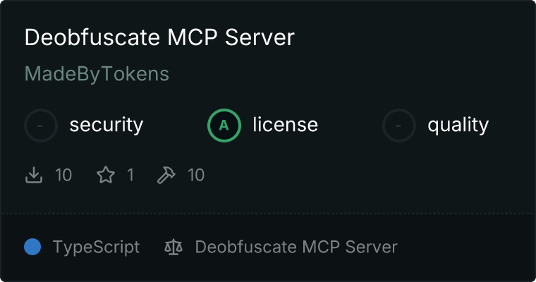 curl -X GET 'https://glama.ai/api/mcp/v1/servers/MadeByTokens/deobfuscate-mcp-server'