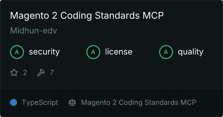curl -X GET 'https://glama.ai/api/mcp/v1/servers/Midhun-edv/magento2-coding-standards-mcp'