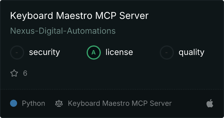 curl -X GET 'https://glama.ai/api/mcp/v1/servers/Nexus-Digital-Automations/Keyboard-Maestro-MCP-2'
