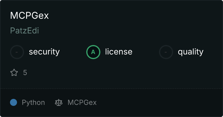 curl -X GET 'https://glama.ai/api/mcp/v1/servers/PatzEdi/MCPGex'