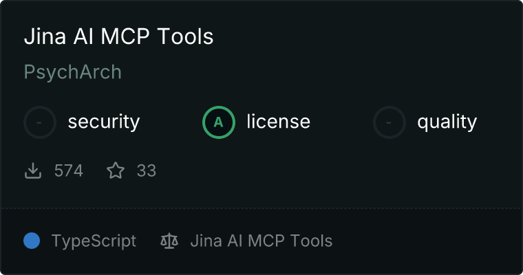 curl -X GET 'https://glama.ai/api/mcp/v1/servers/PsychArch/jina-mcp-tools'
