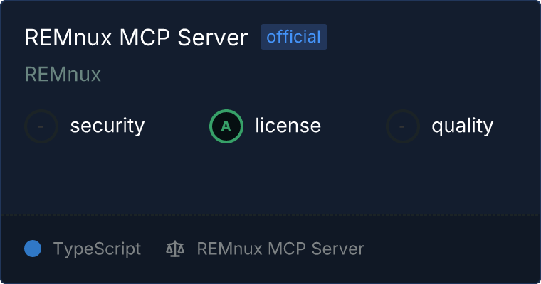 curl -X GET 'https://glama.ai/api/mcp/v1/servers/REMnux/remnux-mcp-server'