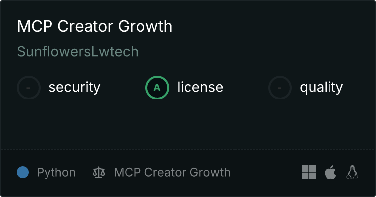 curl -X GET 'https://glama.ai/api/mcp/v1/servers/SunflowersLwtech/mcp_creator_growth'