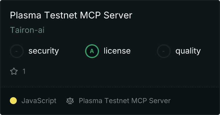 curl -X GET 'https://glama.ai/api/mcp/v1/servers/Tairon-ai/plasma-mcp'