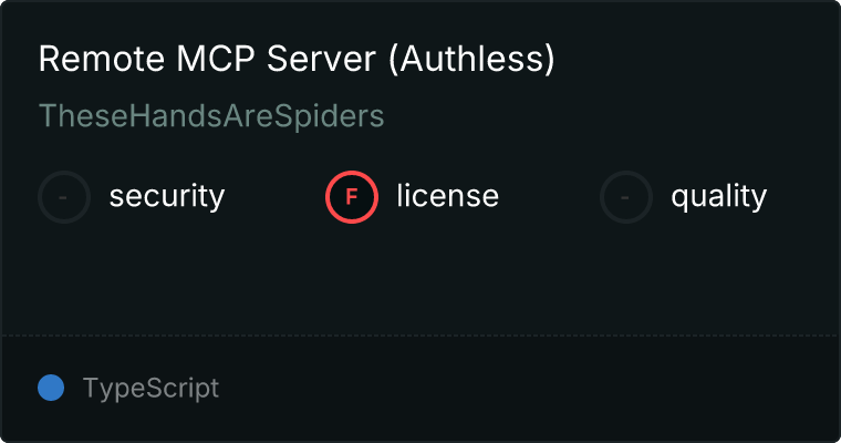 curl -X GET 'https://glama.ai/api/mcp/v1/servers/TheseHandsAreSpiders/remote-mcp-server-authless'
