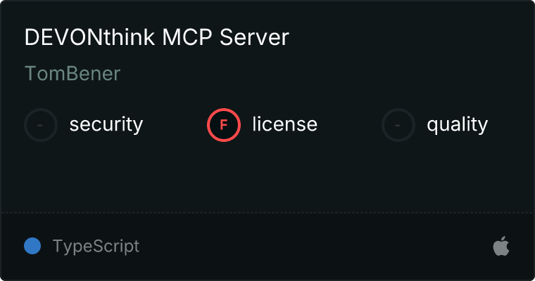 curl -X GET 'https://glama.ai/api/mcp/v1/servers/TomBener/devonthink-mcp'