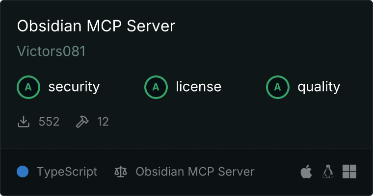 curl -X GET 'https://glama.ai/api/mcp/v1/servers/Victors081/obsidian-mcp-server'