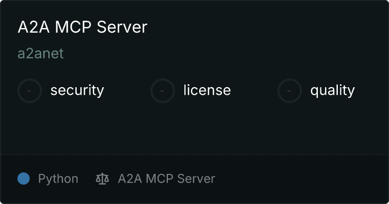 curl -X GET 'https://glama.ai/api/mcp/v1/servers/a2anet/A2AMCP'
