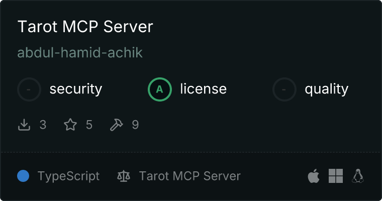 curl -X GET 'https://glama.ai/api/mcp/v1/servers/abdul-hamid-achik/tarot-mcp'