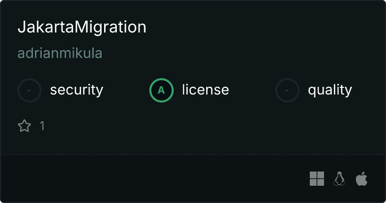 curl -X GET 'https://glama.ai/api/mcp/v1/servers/adrianmikula/JakartaMigration'