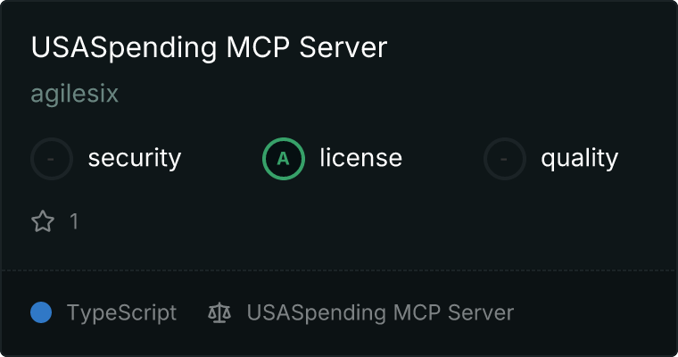 curl -X GET 'https://glama.ai/api/mcp/v1/servers/agilesix/usaspending-mcp-nextjs'