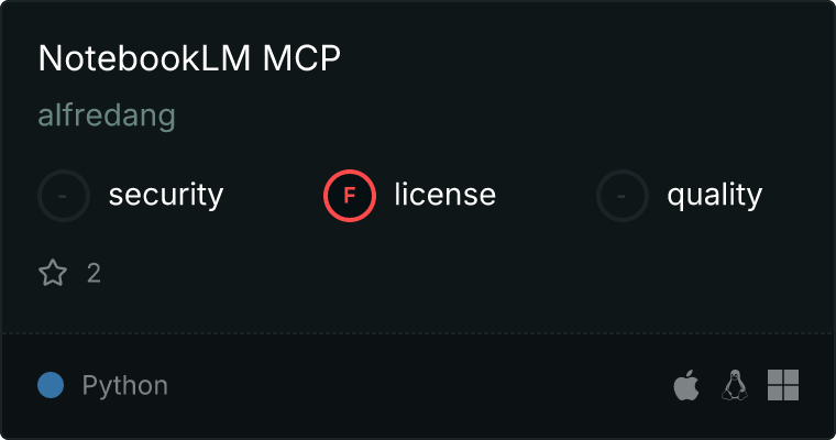 curl -X GET 'https://glama.ai/api/mcp/v1/servers/alfredang/notebooklm-mcp'