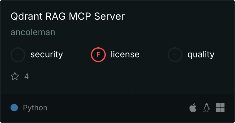 curl -X GET 'https://glama.ai/api/mcp/v1/servers/ancoleman/qdrant-rag-mcp'