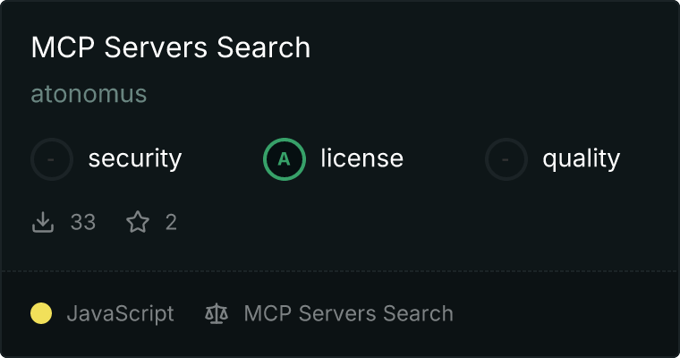 curl -X GET 'https://glama.ai/api/mcp/v1/servers/atonomus/mcp-servers-search'