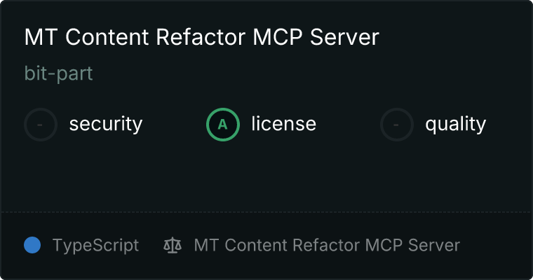 curl -X GET 'https://glama.ai/api/mcp/v1/servers/bit-part/mt-content-refactor-mcp'