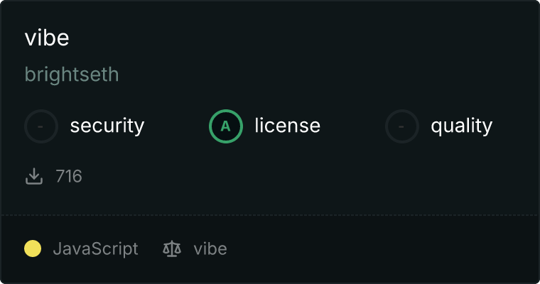 curl -X GET 'https://glama.ai/api/mcp/v1/servers/brightseth/vibe'