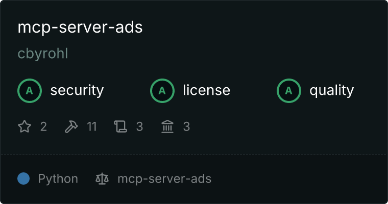 curl -X GET 'https://glama.ai/api/mcp/v1/servers/cbyrohl/mcp-server-ads'