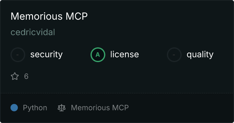 curl -X GET 'https://glama.ai/api/mcp/v1/servers/cedricvidal/memorious-mcp'