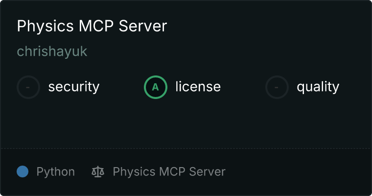 curl -X GET 'https://glama.ai/api/mcp/v1/servers/chrishayuk/chuk-mcp-physics'