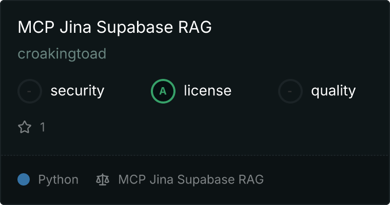 curl -X GET 'https://glama.ai/api/mcp/v1/servers/croakingtoad/mcp-jina-supabase-rag'