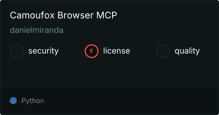 curl -X GET 'https://glama.ai/api/mcp/v1/servers/danielmiranda/camoufox-browser-mcp'