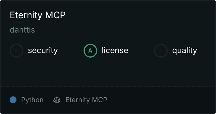 curl -X GET 'https://glama.ai/api/mcp/v1/servers/danttis/eternity-mcp'