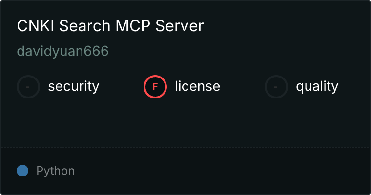 curl -X GET 'https://glama.ai/api/mcp/v1/servers/davidyuan666/CNKISearchMCP'
