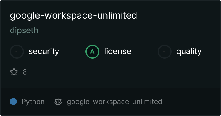 curl -X GET 'https://glama.ai/api/mcp/v1/servers/dipseth/google-workspace-unlimited'